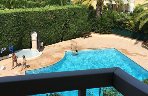 In Antibes, path of the parouquine, 1 km from the old Antibes and the port, in residential area, very quiet, beautiful residence of three floors with pool and elevator, new apartment on the 2nd floor consisting of two rooms of 38m2 + terrace 9 m2 view sea and mountain view, pool view. Overlooking the square fort d'Antibes. 1km walk from the beaches of Fontonne