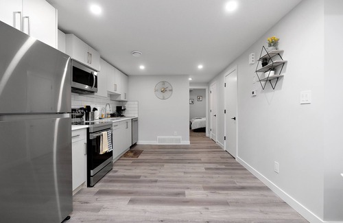 Enjoy this cozy private suite in the charming centrally located neighbourhood of Inglewood. This basement suite is a BRAND NEW BUILD and features many amenities. This beautifully designed 1 bed, 1 bath suite has its own private entrance making it completely separate from the main floor. It comes equipped with all the necessary kitchen items such as all tableware, glasses, tubberware, cooking tools and necessities, coffee pot, kettle, coffee, decaf coffee, tea, etc. Features a washer and dryer, dishwasher, Wifi, and a SMART TV with Telus Optik TV! It is within walking distance to Kingsway Mall (about 10 minutes or so) and is a short drive (or scooter/uber) to downtown! The bedroom features a large comfortable queen size bed and a spacious walk-in closet! There is also potential for a 3rd guest to stay on the cozy couch as well. All necessities are taken care of with toilet paper, paper towel, laundry detergent, soap, shampoo, conditioner, dishwasher pods, dish soap, etc all supplied in set quantities! There are towels for your convenience as well! We take pride in offering a quality stay for our guests. As such, the suite is meticulously cleaned and set for each guest. Detailed check-in instructions are communicated 24 hours before check-in and checkout instructions are send to each guest the night before checkout. I hope you give us the opportunity to host you in this beautiful basement suite here in Edmonton!
