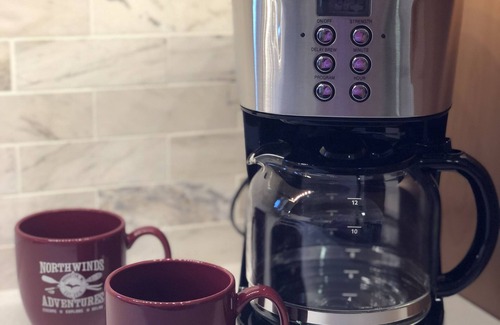 Sitting on the property of Northwinds Adventures, a year round camp, the “Perch" cabin features 3 bedrooms; one with a King bed (linens provided), one with a Queen bed (linens provided) and another with 2 twin bunks (linens provided). For additional sleeping space, there is a full futon and leather couch in the living room. Pack and Play available upon request - $10. White Oak hardwood floors throughout cabin and gorgeous maple walls and ceilings, both bathrooms have beautiful tiled walk in showers. A wood burning stove is available to take the chill off in the cooler seasons, firewood provided for $8/bundle. In the hot summer months enjoy the A/C. The kitchen is full with a large island, everything you need to prepare a great meal after a day outdoors. Washer/Dryer for use as well!