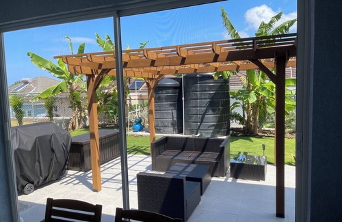 THE RUBY is a serene villa nestled in the hills, 15 minutes from Ocho Rios and is ideal for families & remote workers. The villa features modern conveniences including A/C units, ceiling fans, Wi-Fi, backup solar power with battery, 2 water tanks, fenced gated back yard, security cameras, workstation with monitors, 4 smart TVs, whole home water filtration, extended patio with a lit pergola, BBQ, basketball arcade & board games. Also available: car seat, crib, baby bath and highchair. We’ve decorated THE RUBY to be our home away from home and hope you thoroughly enjoy your stay!