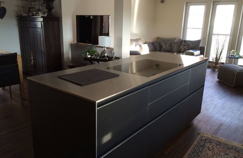Then the townhouse "Auszeit", furnished with luxury and comfort, has a wonderful roof terrace with a view over the roofs from Balingen to Plettenberg to relax and live your home in the city center. The cozy "Stadthaus Auszeit" with the last arch of the city is located in the city center of Balingen. Newly renovated and furnished in 2018 with great attention to detail. The holiday home "Auszeit" with 67sqm of living space and its own entrance offers space for 3-4 people. The cozy living and dining area (parquet floor) with air conditioning offers an exclusive open kitchen with island, a nice cozy dining area as well as a sofa corner, swivel relax armchair, rotatable flat screen TV, WiFi and stereo and where you can relax and enjoy. In the attic you will find a cozy bedroom with a French bed (1.60x2.00) and a flat screen TV as well as a bedroom with a guest bed (1.80x2.00), desk and air conditioning. The bathroom is equipped with a bathtub, washstand and toilet. A parking space is available during your stay in the underground garage. The apartment is non-smoking.