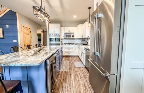 The kitchen is a chef's-delight, stocked full of high-end appliances and cookware, including a fully-stocked appliance closet with a crockpot, insta-pot, blender, and so much more. The granite counters, luxury Viking brand-appliances, dual oven, glass cooktop, large kitchen island, farmhouse sink and dual-temperature wine fridge will make you excited to whip up something tasty.