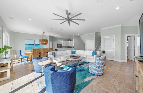 Enjoy breathtaking panoramic Gulf views from the expansive balcony, and take advantage of the full-service elevator for easy access throughout the home. Six of the seven bedrooms offer direct Gulf-front views, letting you wake up to the sound of the waves. The 7th bedroom, a bunk room, is perfect for kids in the group.