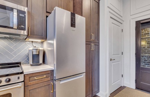 Welcome to River's Edge, a stunning, newly built carriage house studio that perfectly blends coastal charm with chic, elegant design. Located just steps from Savannah's vibrant Riverfront, this modern retreat offers the ideal vacation sanctuary with its refined finishes and unbeatable location.
