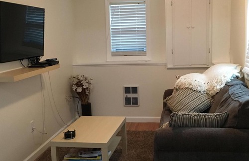 In-law apartment. Bedroom has a double bed that sleeps two with a TV in the room. Living room with large TV has a full pull out bed from the sleeper couch. Kitchen with stove, fridge, microwave and dishwasher. Private bathroom. Private entry with a parking area in driveway. DVD with netflix, full internet and cable included. For weekly and monthly rentals a cleaning fee will be applied. Guests have use of inground pool in summer. Hot tub is not available.