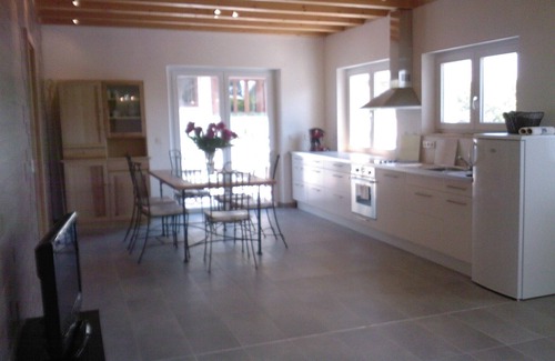New house independent level, air conditioned, located halfway between Colmar and Strasbourg. in an Alsatian village every comfort: 3 bedrooms (2 double beds 2 single beds), living room, dining room, kitchen, 2 bathrooms, 3 toilets, mezzanine. Automated garage. Private parking, green space, equipped terrace, parasol, barbecue. Washer dryer, dishwasher, TV, ceramic hob, oven, microwave, refrigerateurcongelator. Internet access. The house was built entirely by the owners including furniture, everything has been thought for maximum comfort.