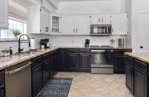 But the allure of Citrus Serene extends beyond its stylish interiors. Step outside into your own private paradise, where a remodeled backyard awaits. Take a refreshing dip in the sparkling chlorinated pool, unwind in the soothing spa, or test your skills on the miniature golf course. Challenge your companions to a friendly game of corn hole or a thrilling match of wall basketball, or simply soak up the Texas sun on comfortable tanning chairs.