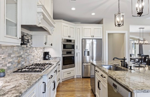 This new home has unobstructed big lake views from every room in the house. It comfortably sleeps 12 people and has just been decorated with new furnishings throughout. There are many spaces to hang out and relax; including a sunroom with couch and dining table, two family rooms, two open air porches and chair around the fire pit. Lake activities include a dock with boat slip, with 1 available jet ski lift, shallow water for wading and playing, deep water for fishing and swimming and 2 kayaks with rental. Take out the kayaks a paddle around the beautiful lake. Put out the floating swim dock and have an extra swim to spot.
