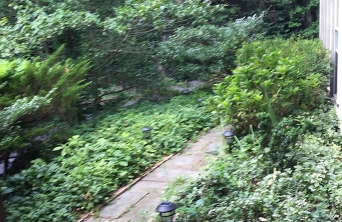 The newly renovated apartment is on the ground floor of our single-family home and sits on ¾ acre lot surrounded by trees and overlooking a garden and pond. It has its own private entrance, and free private parking for two cars. There are two bedrooms - the master bedroom has a king bed and the second bedroom has two queen beds and a 43 inch TV. There also is a pull-out couch in the living room that provides additional sleeping options. The kitchen features brand-new appliances and a large table that seats eight. There is a separate washer/dryer, and a modern, updated bathroom. The separate living area is bathed in light from large picture windows, and where you can relax and watch television on the 65-inch smart TV.