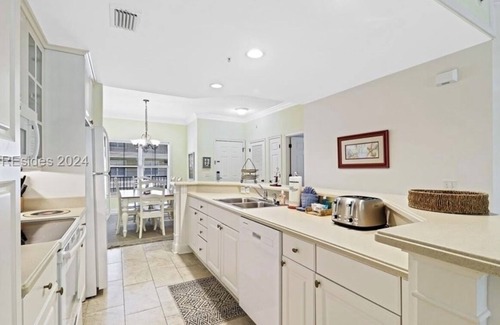 Discover the beauty of Hilton Head Island from this enchanting 2-bedroom, 2-bath condo with upgraded walk-in master shower. With a king bed, queen bed, twin bed, and sofa bed, this delightful space is perfect for small groups or families of 7. Enjoy the convenience of 2 bathrooms with a hairdryer and shower amenities. The living room offers additional sleeping space with a cozy sofa bed. Our place is equipped for both long or short stays to make your holiday one to remember.