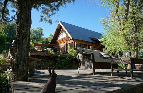 The back door opens to a large deck terracing down toward the creek. Enjoy coffee in the morning and wine in the evening with the sound of the creek flowing by. Stroll through the park-like setting or go fishing along your private creek. This warm and unique environment is perfect for a romantic getaway, one adult couple or a small family of 3 (not suitable for children under 12). You may not want to leave the seclusion of the property, but if you do, the town of Ridgway is only 3 miles away and all the activities offered by the area are close. The owners live on the other side of this 8-acre property. Just behind the property is a wild 200-acre green belt.