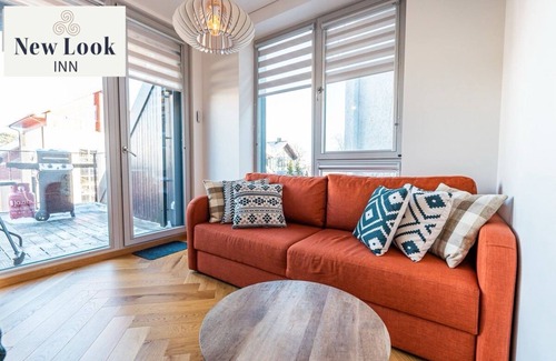 Elegant triplex apartment in Juodkrantė’s elite New Look Inn—featuring designer interiors, seashore breezes, a private terrace, luxe kitchen, Netflix, BBQ, and private parking. Steps from nature and sea. Refined comfort, redefined.