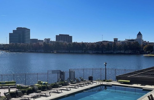 Enjoy this luxury unit designed to make you feel at home! Our spacious apartment comes with 2 Roku Smart TVs, a King size bed with plush comfy pillows, roll out Twin XL bed with a memory foam mattress, dedicated workspace that includes a breath-taking lake view, stainless steel appliances, quartz countertops, 10ft ceilings, walk-in closet, covered patio, fully equipped kitchen, utensils, and FREE parking. The bathroom is equipped with a hair dryer, high quality white towels, body wash and shampoo. This unit includes all the amenities you need for a comfortable stay! Onsite pool, fitness center, clubhouse, & business center.