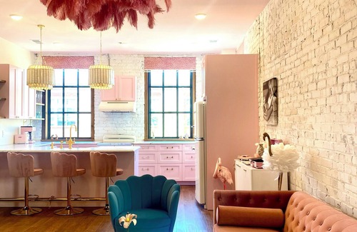 “Pink Penthouse Deluxe” is a luxurious Beverly Hills Hotel-inspired retro hideaway in a lovingly restored 1940 warehouse, just steps away from the main intersection in Chattanooga's bustling Southside neighborhood. Enjoy privacy and seclusion above the fray on the second story, a private rooftop deck, and 30+ independent, locally owned restaurants, bars, galleries and venues within a ten-minute walk.