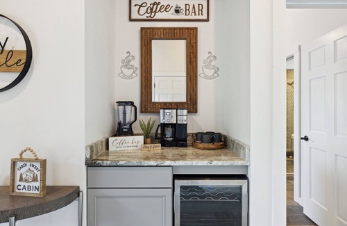 Unwind and reconnect with loved ones in our spacious game room, complete with a pool table, shuffleboard, arcade games, karaoke machine, foosball and a collection of board games for endless fun and laughter. Our attention to detail is evident throughout, with granite countertops and high-end furnishings creating an ambiance of elegance and comfort. Wake up to a fresh cup of coffee at the Coffee Bar complete with Keurig Coffee Pot and K-Cup Maker or make a refreshing smoothie with the Ninja Blender!