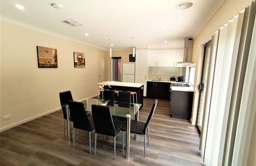 My Place in Albury is a gorgeous, modern, new home for you to enjoy. The property features 3 bedrooms all with Queen beds & sleeps up to 6 people. The master room has a walk in robe & ensuite & the other bedrooms have built in wardrobes. The kitchen is fully equipped, lounge with a smart TV, dining room and charming outside patio area. Its a short 5 minute drive to town & local attractions. Located nicely to Beechworth, Rutherglen, Hume Weir, Snowfields and surrounds.