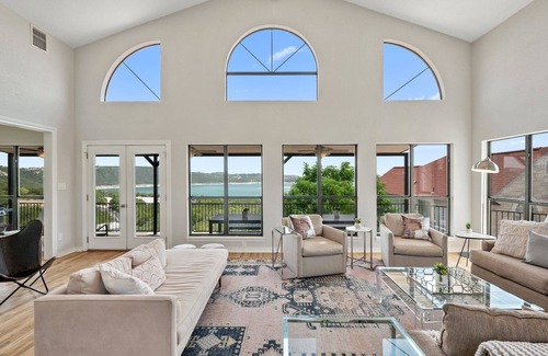 This beautiful luxurious home, "Overlook Oasis", offers plenty of space for everyone to sprawl out, but large entertaining areas to come together to make those lasting memories! With amazing views of Lake Travis, bright and airy rooms full of natural sunlight, close proximity to Lake Travis, a fully equipped home, and so much more awaiting, you are sure to have an incredible time and leave with unforgettable experiences! Whether you plan to relax inside or out, you'll be in awe of the views and nature that surround you!