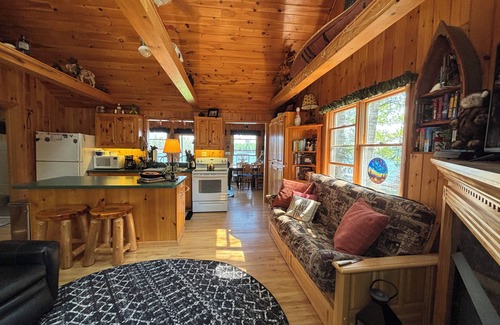 Discover the beauty of Lake Vermilion from our cozy retreat. This classic 2-bedroom cabin (Hill of Beans Cabin) offers two living rooms with two log futon beds, two main floor bedrooms, one lake side; and a main floor bathroom with vanity and shower. Vaulted kitchen/dining/living room with gas fireplace & patio sliding door to deck on waters edge. Come listen to the sounds of the water lapping shore, loon calls and lake breezes. Enjoy the peaceful surroundings and unwind in this beautiful getaway. Panoramic island studded views, 140 feet of swimming shoreline, minutes to shopping, groceries, restaurants, golf, Fortune Bay Casino and much more!