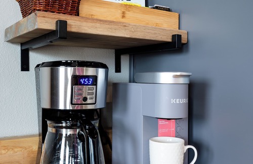- We ALSO provide: 6 keurig cups, coffee grounds, filters, tea, sugar, creamer, salt, pepper, olive oil spray for cooking.