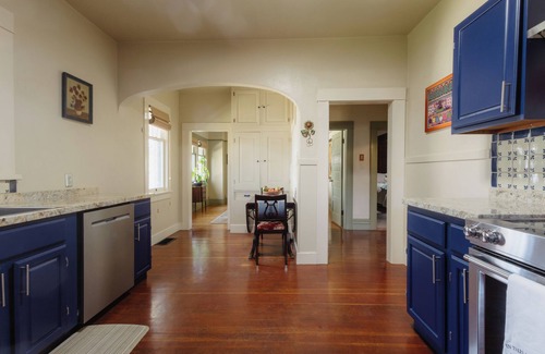 Welcome to your charming 2-bed, 1.5-bath home, a block from the Truckee River, designed with a focus on creating a low-toxin environment. Step into a space filled with vintage décor and character-filled pieces, ensuring a nostalgic charm while prioritizing your well-being. With 1550 sq ft of space, it's perfect for a rejuvenating stay. Enjoy modern amenities, a large 65" smart TV and a fully stocked kitchen. Conveniently located minutes from Downtown, Midtown, UNR, and plenty of free parking.