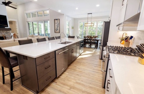 Spread out and cook to your heart's content on the expansive countertops. There's plenty of room for multiple chefs to work simultaneously. The dining table seats 6 with additional seating for 6 at the kitchen island. Whether you're a seasoned chef or just looking to prepare simple meals, our kitchen has you covered. It's the heart of the home, where delicious meals and cherished memories are made.