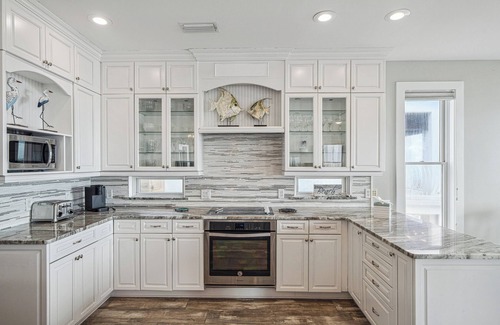 Step outside to the beautifully designed outdoor seating area, perfect for families and friends to unwind while watching the unforgettable sunset views over the Gulf. Guests can also enjoy the newly built beachfront infinity pool, explore the serene nature preserve, or take a stroll to the famous jetties—ideal for fishing, snorkeling, or simply soaking in the coastal beauty. From March 1 - October 31, you will receive complimentary beach service set up consisting of 4 chairs and 2 umbrellas. Simply tell the beach attendant you are staying at 65 Lands End, Sawlty Dawg!