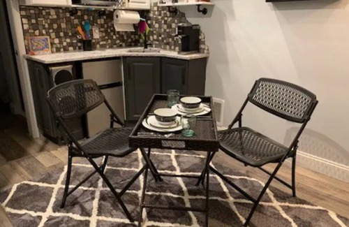 Set in a quiet neighborhood with beautiful perennial garden at your private entrance, there's a garden with seating to enjoy quiet moments and fire pit to toast s'mores and hot dogs. Inside, a beautifully decorated space provides for all your needs in a lush tho industrial chic design. All amenities can be accessed on one floor with no barriers.