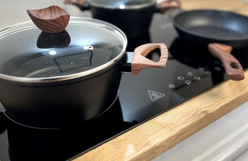 Prepare a home-cooked meal in the kitchen, complete with an oven, a stovetop, and a refrigerator, as well as a coffee maker, cookware, and a toaster. And because there's a washer and dryer, you can go a bit lighter on your packing. Other amenities include bed sheets, an ironing board, heating, and a dining table.