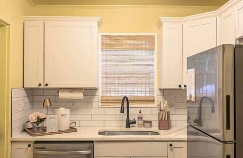 Cozy, stylish, and just 10 mins to Downtown Charleston & the airport. Two king bedrooms, full kitchen, dining for four, office nook, and living room with pull-out sofa. Enjoy coffee from the Smeg, tea on the patio with hummingbirds, and lounge in the hammock. Located in a friendly, working-class neighborhood close to all the attractions. This home has been carefully curated to blend comfort, style, and a touch of whimsy—making it the perfect spot to unwind after a day exploring Charleston’s charm. Whether you’re strolling historic streets or sipping a martini in the hammock, you’ll find everything you need to relax and feel at home. ✨ What guests love most: • Just 10 minutes to Downtown Charleston (Rainbow Row, The Battery, and waterfront views) • 15 minutes to King Street for shopping, dining, and cocktails • 20 minutes to Folly Beach for sun, surf, and sand • 10 minutes to Charleston International Airport for easy arrivals and departures • Two spacious bedrooms with medium-soft luxury Casper mattresses and ample closet space • A mix of firm and soft pillows so everyone sleeps just right • Color-drenched living room with vintage finds and cozy textures • Three smart TVs for streaming your favorites (living room + both bedrooms) • High-speed internet (400+ Mbps) for seamless remote work or streaming • Pull-out sofa bed for extra guests or movie nights in • Fully equipped kitchen with a Smeg coffee station, plus regular & decaf coffee, teas, creamers, and sugars • Martini glasses & shaker for stylish happy hours • Outdoor dining area for long, breezy afternoons • Hummingbird feeder, bird bath, and birdwatching station—yes, real birds included • Spacious backyard perfect for lounging or soaking up the Charleston sun • Hammock for lazy moments under the trees • Dedicated desk area that can be converted to dining for 4 • Stackable washer and dryer for your convenience • Iron and ironing board for quick touch-ups • Step-free access for easy entry and mobility • Thoughtful touches throughout—from plush linens to an artful, inviting atmosphere Whether you’re here for a romantic getaway, solo recharge, or a design-forward stay with friends—this cozy Charleston retreat is your perfect home base.