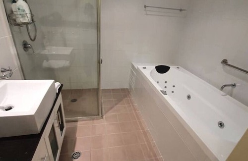 The master bedroom has a queen-sized bed while the second bedroom has 2 single beds. We provide professionally laundered and pressed linen for each stay. Both bedrooms have plenty of wardrobe space for your luggage.