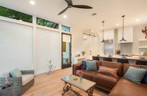 Relax in a sunny, new, modern Mediterranean cottage located in Travis Heights — one of Austin's most desired and unique neighborhoods.