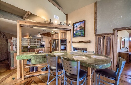 4 bed / 3.5 bath home. Sleeps 10. Master: 1 King. 2nd bedroom: 1 Queen. 3rd bedroom: 1 Queen. Upstairs loft bedroom: 2 Queens. 2 dogs allowed, $25 per day per dog. MUST BE 25 TO RENT. Renter's ID and Credit Card must be presented at check in or via email. Rental agreement must be signed. In addition, the electronic rental agreement must be signed prior to check-in.