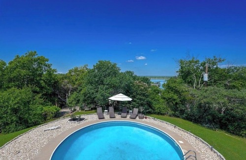 Unwind at this stunning updated home on Lake Whitney! The house was lovingly remodeled with luxury vinyl floors, high-beamed ceilings, tall floor to ceiling windows for a luxurious yet charming feel. Enjoy beautiful lake views from 2nd floor, a pool and access to the lake is close by. Shops and restaurants are only a five-minute drive away, the area feels peaceful and secluded. Bring the whole family to this great place with lots of room for fun!