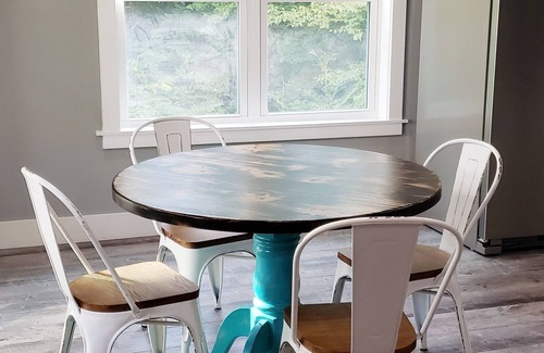 Our dock has space for your boat or we can help you rent one from a local marina. The dock has 2 lounge chairs to enjoy as well as 2 kid kayaks, 3 adult kayaks and 1 tandem kayak. We also have 2 paddle boards, a floating lily pad island, a family canoe & several floats and life jackets. The cove has deep green water & is the perfect spot to swim, float or fish!