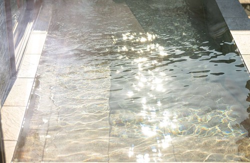 Indoor hot spring is also natural flowing Hot spring and I use modern tile on the wall