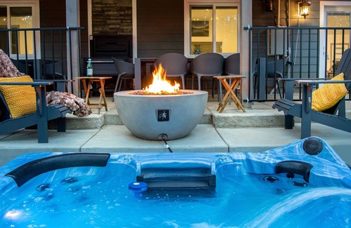 Back inside, the open and spacious floor plan boasts a vaulted ceiling, lots of large windows, and comfortable furnishings including a plush sectional in the living area where you can recline and watch TV. Upstairs, the kid-friendly bunk room includes a foosball table for when you're craving a little friendly competition. Additional options for fun and relaxation are found out back including two fire pits and a soothing hot tub.