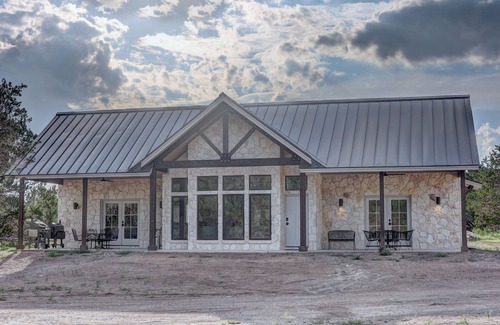 Rio Cuesta is a brand-new riverfront home situated on 5 acres across the river from the historic Vista Camps. The home consists of 2 bedrooms each having one king sized bed and two twin xl bunk beds. Each bedroom has a full bathroom with a standing tile shower. The full kitchen and open living area has stunning views of the Cypress trees and Hill Country hills. Take a short stroll to the covered pavilion that overlooks the Guadalupe River. Kayak, fish, explore or swim on the expansive riverfront! There is an amazing riverfront patio to enjoy all river activities!