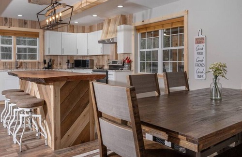 Bring the whole family to our newly constructed mountain home with loads of room for fun and activities! Located 20 minutes outside of Boone, this 5-bedroom home is over 5000 square foot and features loads of new amenities, including outdoor hot tub, pool and ping pong tables, arcades, and a fully equipped kitchen. Our home features high speed WiFi, TV streaming, flat parking and is perfect for families looking for a secluded mountain getaway within a short driving distance to local attractions.