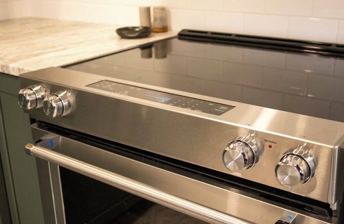 The kitchen is fully stocked with dishes, cooking and baking items and tools, refrigerator, dishwasher, oven and stove, microwave, coffee maker and Keurig.