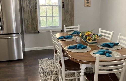 A cozy house that lets you enjoy each other’s company, but yet lets you have your private time with a smart tv in each room. Easily accessible year round, with paved driveway. Quiet country setting with Mountain Views, and a fire pit for viewing the stars, hanging out with friends and family while making smores, or waiting for the fireflies, aka. (lighting bugs), to come out. Room for gathering outdoors for guest activities, or stay cool inside with the new AC. A small creek runs through the property. Enjoy relaxing on one of 3 porches with your coffee and a book or personal media, while being visited by deer and other wildlife. Near Boone, Valle Crucis, Sugar Grove, Banner Elk and Blowing Rock, where you will find lots of quaint shops and a plethora of dining venues. A short distance to shopping, theme parks, skiing, tubing, biking , hiking , state parks, stream fishing, canoeing, swimming, zip lining, climbing courses, horseback riding and gem mining. A lake within 20 minutes with boat rentals available.Also convenient to many restaurants and markets. Convenient to Appalachian State sporting and cultural events. A great place to explore local arts, including murals, and crafts, or a farmers market. There are several Christmas tree farms nearby. The surrounding yard is for your enjoyment only. The adjacent 2 story building is for storage (not for occupancy). The house is easily accessed via about a "0" inch rise from the driveway to the porch and no steps to that entrance, only a threshold. Relax in a clean and cozy property with the people you enjoy spending time with, while visiting the beautiful area.