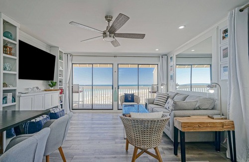 Newly remodeled BEACHFRONT condo with unobstructed sunset/ocean views. This is a top floor unit In a 2 story building, with 2 exterior decks and private front porch/entry. Perks of choosing this unit to stay include gated resort with pool, tennis courts, and par 3 golf course (all included free of charge).