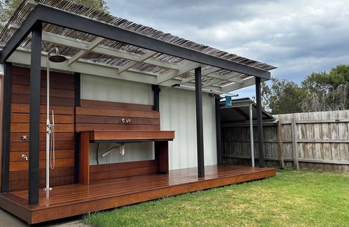 Improvements and additions never stop at Rose Sea Cottage, and we are now pleased to offer a newly-built outdoor covered deck with hot and cold shower! This is a perfect area to wash down after the beach with a handy bench to wash the bathers etc, as well as a shaded clothes line to dry clothes that may be sensitive to full sun. (We also have a separate larger clothes line fully exposed to the sun). Let's be honest, we love the beach but also love coming home to a hot shower, and now it's easier than ever to wash yourself (and the kids!) with our outdoor shower using top-quality tapware.