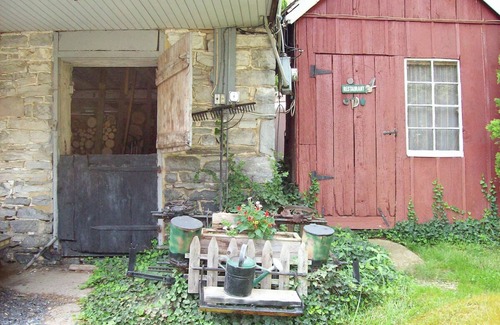 The warm rustic feel of the double bed room lets you unwind and enjoy the peace of a simpler day. It is furnished with antiques, a sliding barn door to the shower and in room vanity. You'll want to stay in bed and cozy up with a book. We have a selection of books if you didn't bring yours.