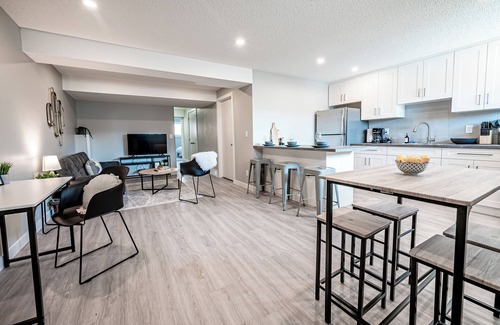 Welcome to your home away from home! This charming newly renovated above grade basement suite is located minutes from downtown! This 2 bedroom property comes with everything you will need for an amazing stay including in suite laundry, private secured access, free parking, fully stocked kitchen with brand new appliances and much more. You can enjoy Netflix and Youtube on the 4K smart TV in the livingroom. Also enjoy a designated work space for those working from home.