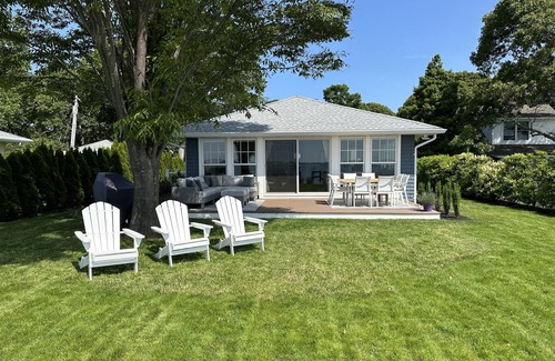 The Bluffs is a newly renovated 3 bedroom, 2 bathroom house that has a fully furnished outdoor area and stairs leading to a private beach. The Bluffs was decorated with a coastal calm inspiration and has an open floor plan containing panoramic views of the Peconic Bay. Watch the sunrise from the comfort of the kitchen or from the private beach. The kitchen is fully equipped with all new appliances, utensils and accessories, including a mini-fridge for wines and other beverages. Enjoy grilling on the BBQ and watching the boats pass by while lounging on the new outdoor furniture.
