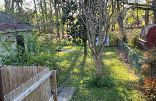 Recently updated, 3-bedroom/2 bath home you can enjoy on your vacation or business trip. Cozy and private with all the comforts of home & accommodates 6. Free driveway parking. Inside, we have WiFi, board games for family fun, along with a dining room, full kitchen, washer/dryer, black out curtains in the bedrooms, plenty of closet space and amenities provided to meet all your needs. This includes central heat and air along with bed linens, towels, water purifier and ceiling fans. Outside, we have a deck with seating and cushions, a huge, pet-friendly backyard and a fire pit. You can enjoy a full privacy fence, hammock and stand for your convenience.