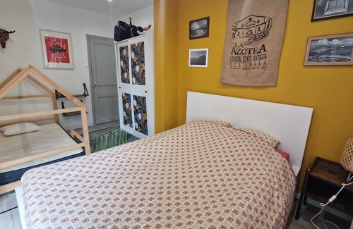 It should be noted that there is an air conditioner in the room for warm nights! We specify that access to the garden is through the main corridor of the house, on the ground floor (you must go down one floor to get there). Thank you not to expect new or modern common areas because, without being dilapidated, they are quite rustic and stand out from the apartment itself, renovated in 2020 and very well maintained by us.