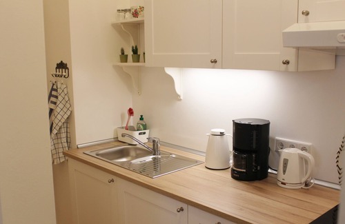 This self-contained apartment (approx. 20 m²) is on the ground floor of our house facing the back yard. The room has a large comfortable double bed (180 x 200) and a seating area. In the hallway to the private bathroom, there is a well-equipped kitchenette with a fridge, stove and oven. Our house is within walking distance (5 min) to the city center with all sights, and 10 min. walk from the main train station.