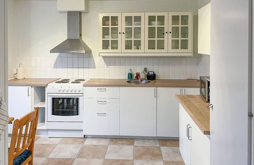 Spend your holiday in this cosy holiday apartment on the outskirts of Hyltebruk in Småland. Whether you want to relax or use it as a base for exciting excursions, you'll find the ideal combination of comfort and nature here. Enter your bright and friendly furnished apartment. The spacious living room with sofa and armchair invites you to relax. End the evening with a good book or a film. Warm wooden furniture and subtle decorations create a pleasant atmosphere. Use the large eat-in kitchen with dining table for convivial meals.