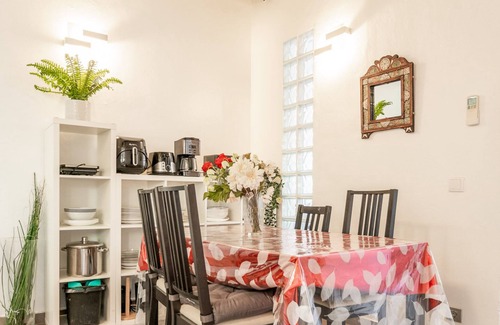 Large, fully-equipped open-plan kitchen Dining room with air-conditioning No AC in other rooms, but ceiling fans and table fans.